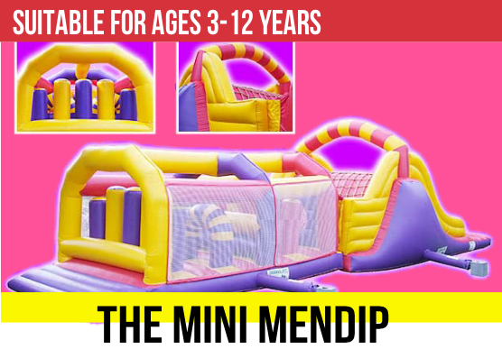 An enclosed assault course with several sets of obstables ending with slide. At only 11-feet-high, and with the ability to curve, this can be used inside village halls.